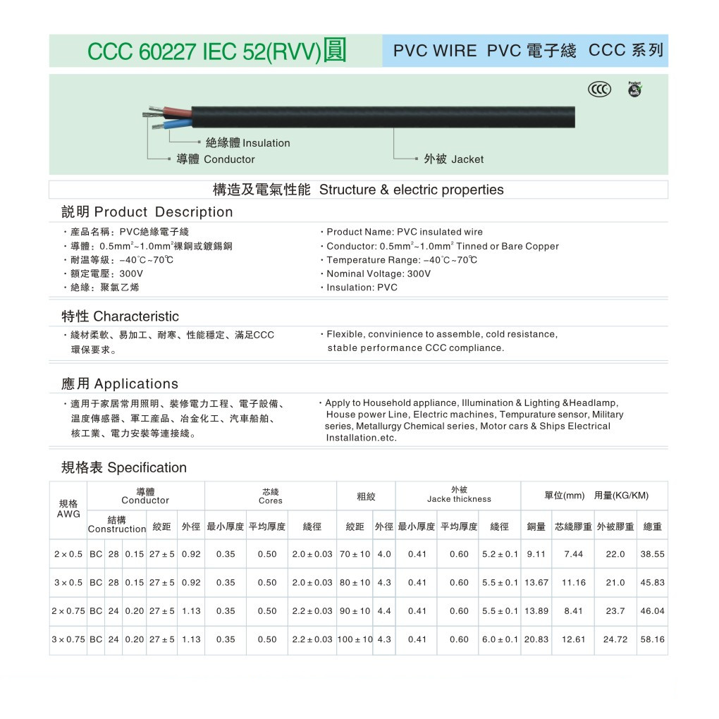 Model Number : CCC 60227 IEC 52(RVV) circle